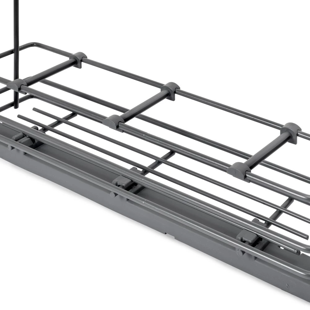 - Fabricado en varilla de acero pintado gris antracita con separadores en plástico gris.