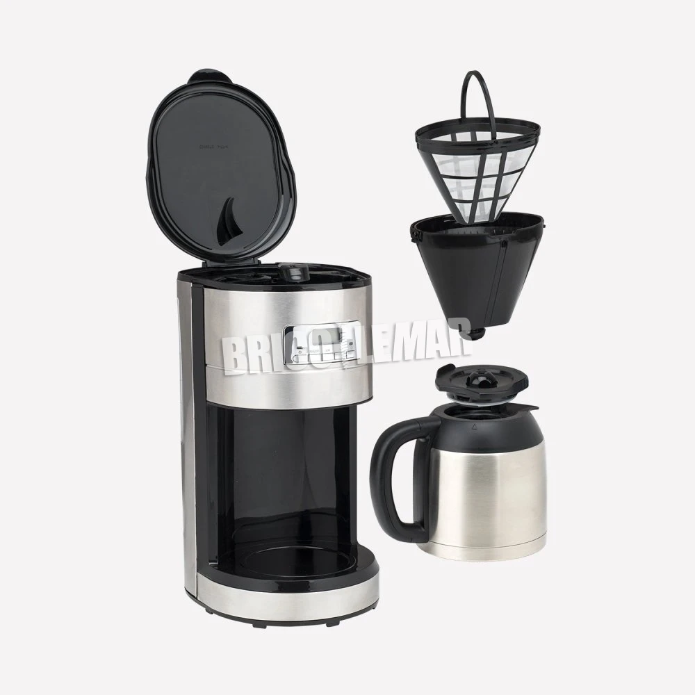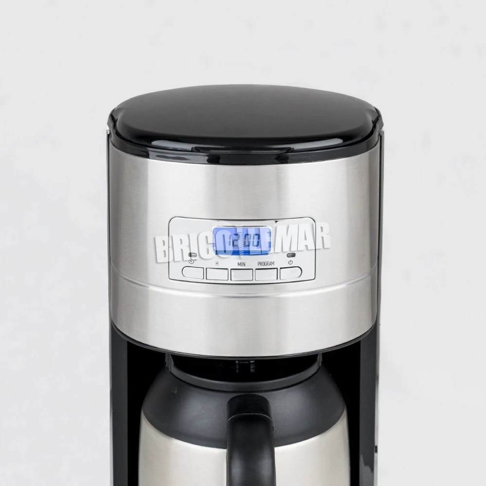 Un tanque de agua de 1,2L le permitirá preparar hasta 10 tazas de café. Su jarra isotérmica con doble capa de acero inoxidable mantendrá su café caliente preservando su aroma natural.