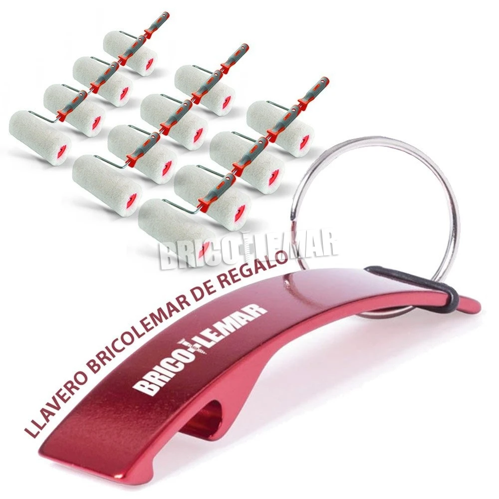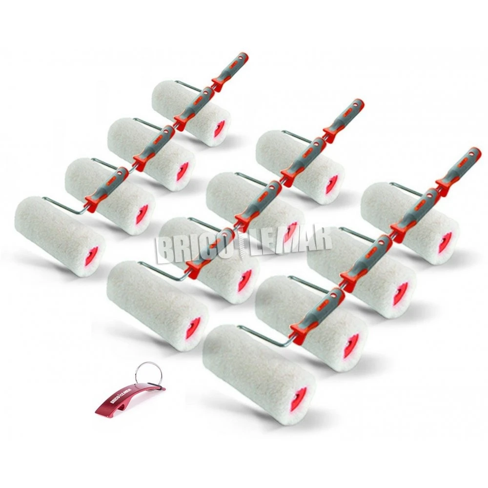 12 rodillos de lana tejida con mango bimaterial y barilla de acero ideal para superficies lisas.