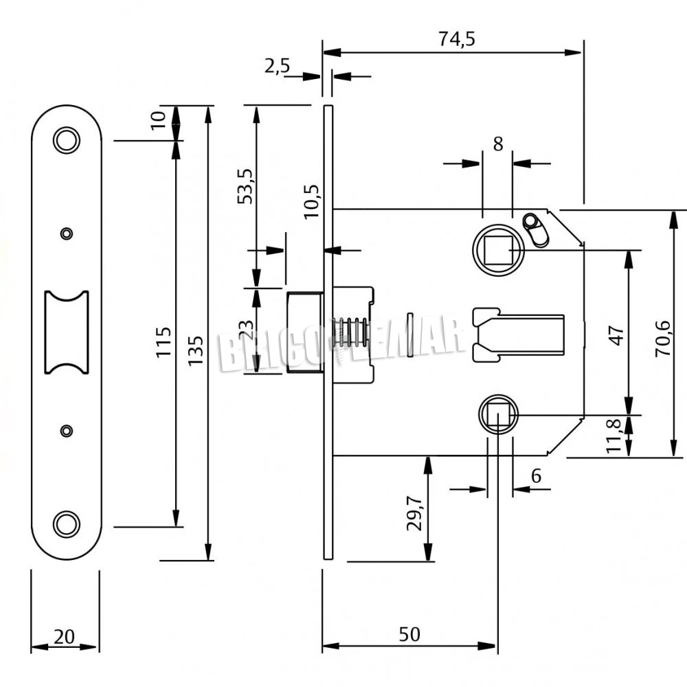 - Es una cerradura ideal para puertas con solapa debido a la estrechez de su frente.