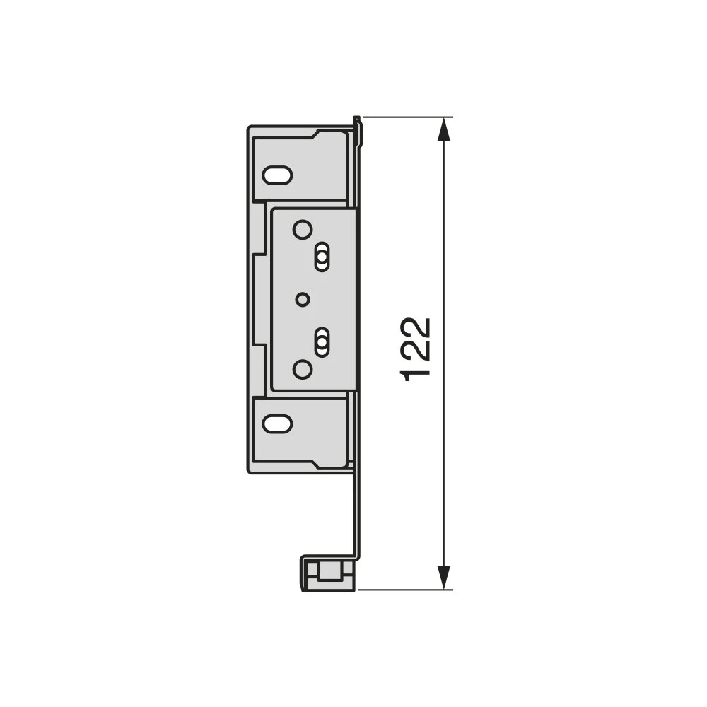 Con un diseño elegante y una altura de 122 mm, ofrece una gran amplitud interior y un acabado moderno. Su sistema permite la regulación del frente del cajón en ±2 mm en vertical mediante excéntrica y ±1,5 mm en horizontal. Además, incorpora la guía Silver L de extracción total con cierre amortiguado y una capacidad de carga de 25 kg, garantizando suavidad y resistencia en el deslizamiento.