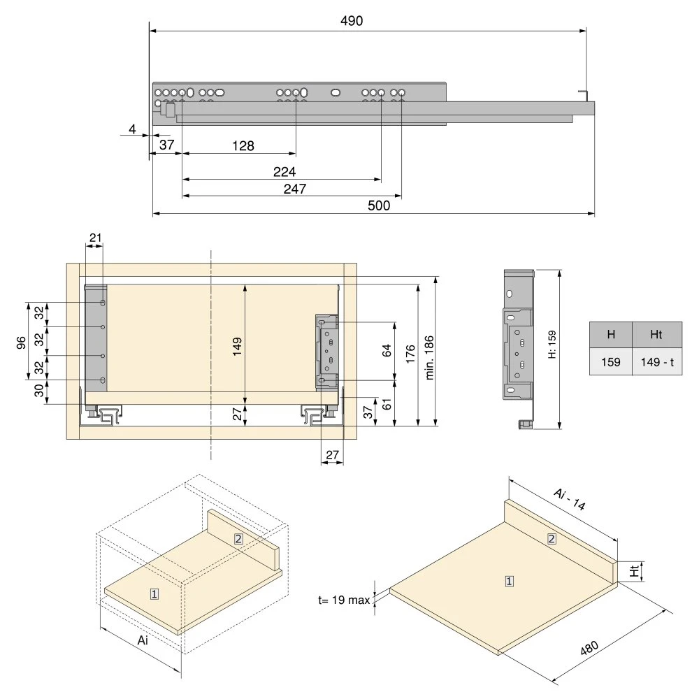 - Tiene una altura de 159 mm con un diseño elegante, para cajones de profundidad de 490 mm, ofreciendo gran amplitud interior y un acabado moderno.