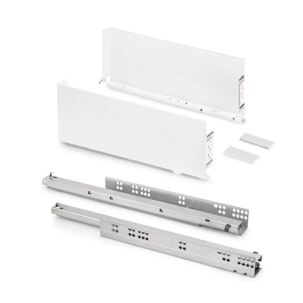 Con un diseño elegante y una altura de 159 mm, ofrece una gran amplitud interior y un acabado moderno. Su sistema permite la regulación del frente del cajón en ±2 mm en vertical mediante excéntrica y ±1,5 mm en horizontal. Además, incorpora la guía Silver L de extracción total con cierre amortiguado y una capacidad de carga de 25 kg, garantizando suavidad y resistencia en el deslizamiento.