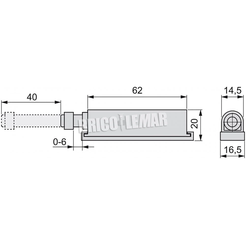 Permite la apertura y cierre de la puerta sin necesidad de tiradores. Se monta atornillado en la superficie del mueble. Se recomiendan tornillos de cabeza pozidrive autorroscantes de diámetro 3 mm. Para su montaje se recomienda una bisagra invertida. Fabricado en plástico con acabado gris.