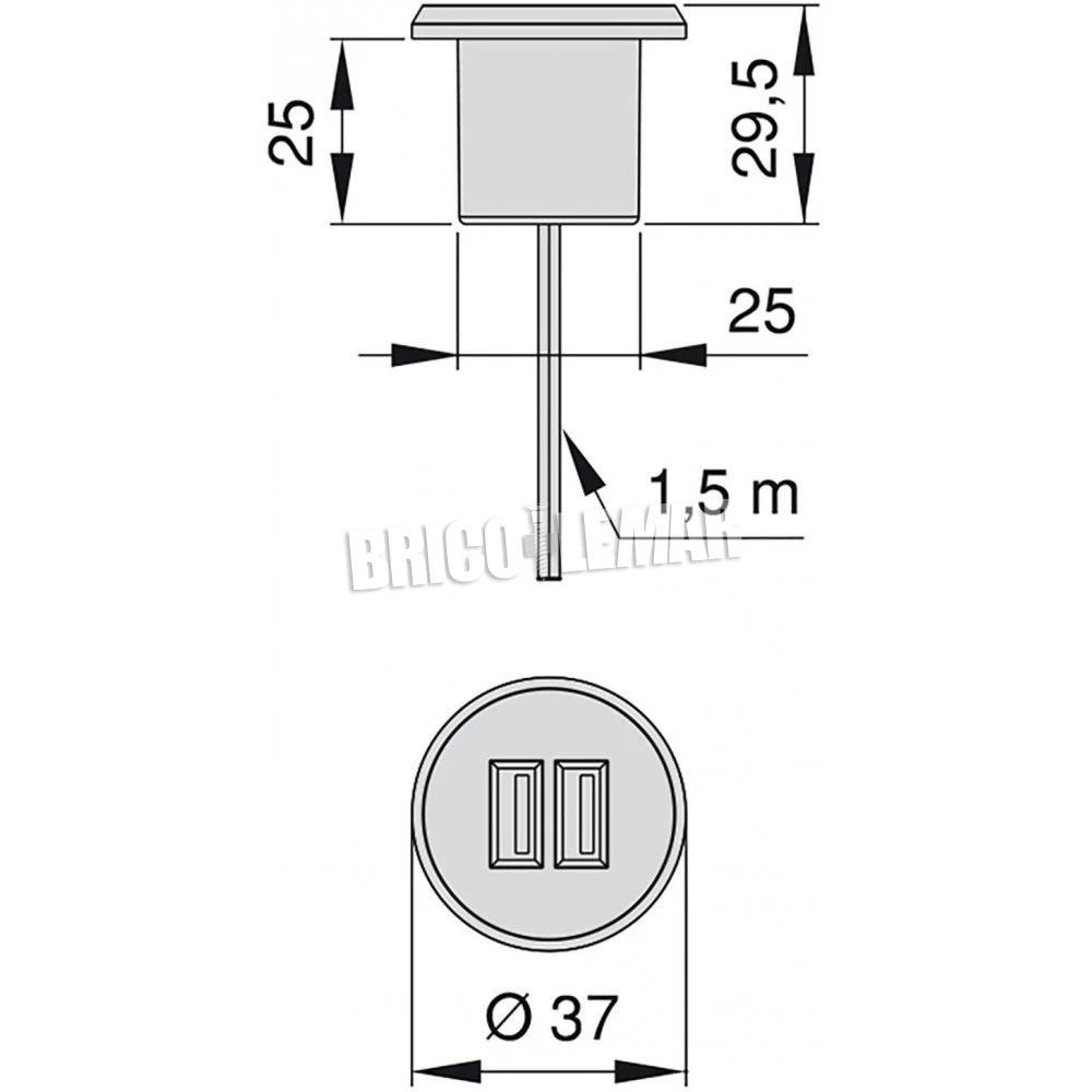 Conector redondo para encastrar en el mueble 2 entradas USB Ø37mm plástico gris metalizado Emuca