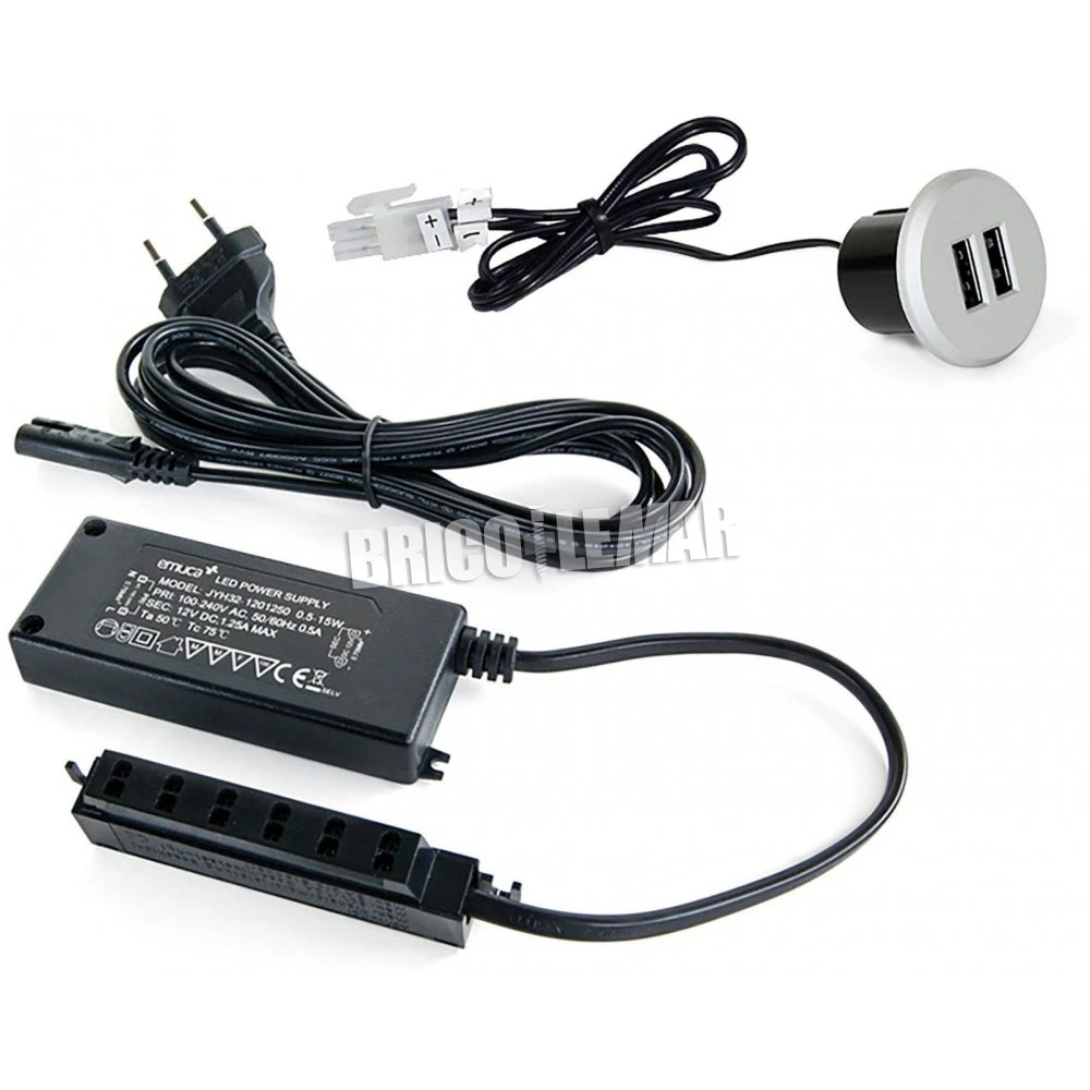 Comprar Conector redondo para encastrar en el mueble 2 entradas USB Ø37mm plástico gris metalizado Emuca