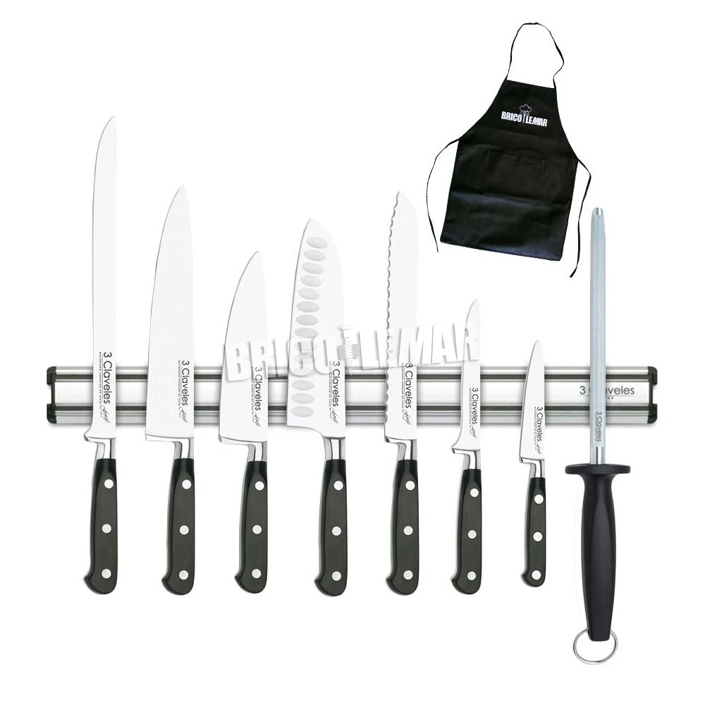 Conjunto de 7 cuchillos gama Forgé 3 Claveles y chaira en soporte magnético
