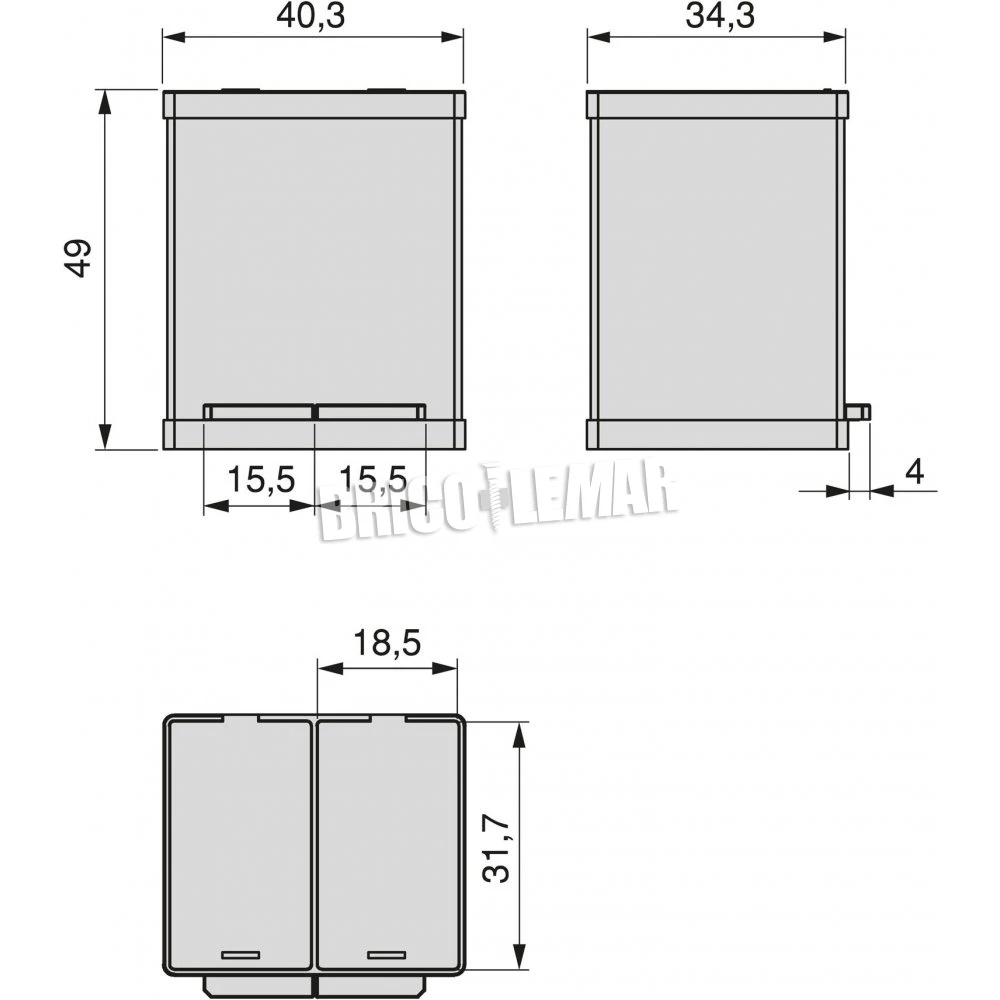 Contenedor de reciclaje de 2 compartimentos de 15 litros.