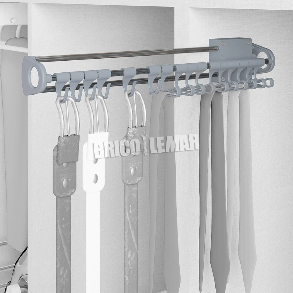 El corbatero portacinturones lateral extraíble Self es el accesorio ideal para poner en orden el interior del armario. Al ser extraíble permite tener siempre a mano cinturones y corbatas.