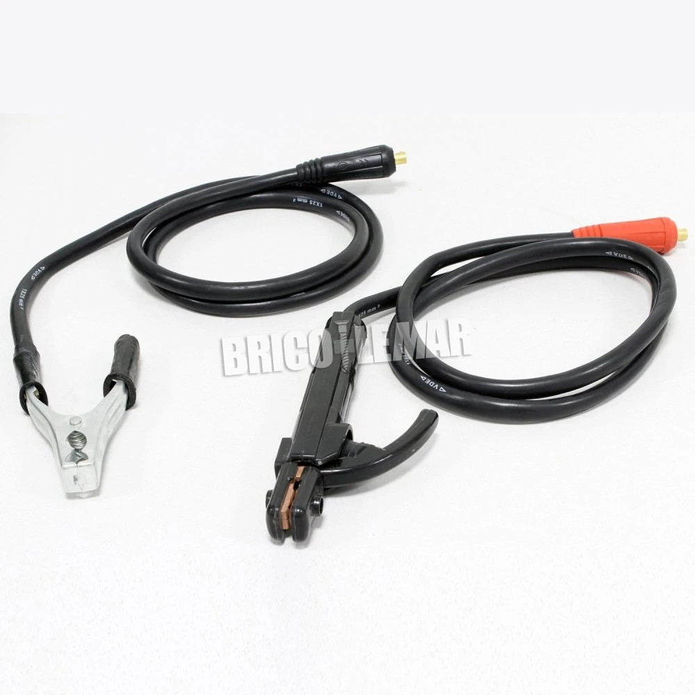 Equipo soldador con accesorios: porta-electrodos 1m y alicate de masa 1m.