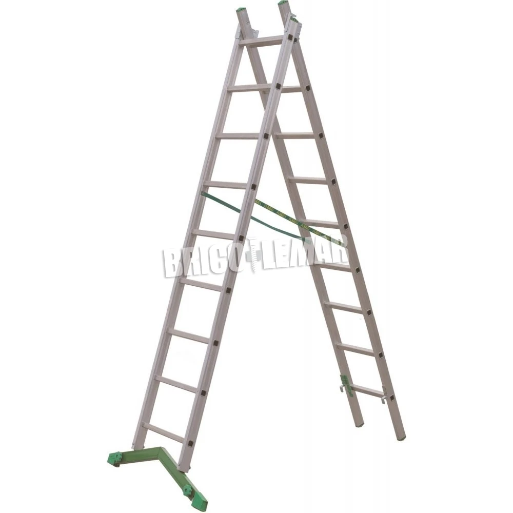 Escalera de aluminio multiusos 2 tramos 9+9 peldaños Plabell PI-209