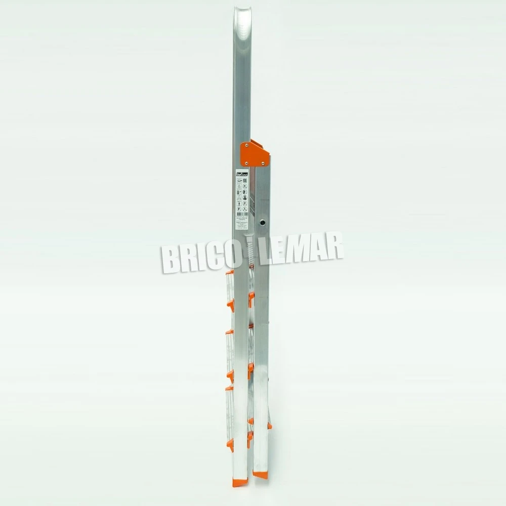 La escalera DOMIN destaca por su gran estabilidad y robustez siendo al mismo tiempo muy ligera. Su perfil de aluminio de 50×20 mm asegura su firmeza con un refuerzo posterior en intersección con peldaños de apoyo de 12 cm de anchura.