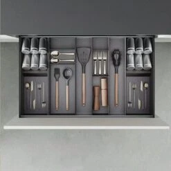 Organizador Inclinado Orderbox Para Cajón, 150x470mm, Acero Y Madera, Gris Antracita – Emuca
