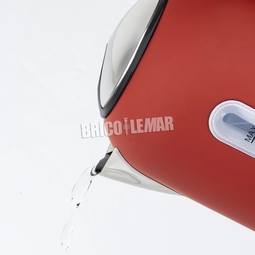 Hervidora de agua para disfrutar de tés, infusiones y cafés a una temperatura ideal. Su gran capacidad de 1,7 Litros y su potencia de 2200W permiten preparar bebidas calientes en pocos minutos. Diseño vintage acabado en rojo mate y acero inoxidable, inalámbrica para colacarla en cualquier parte y con una base giratoria 360º.