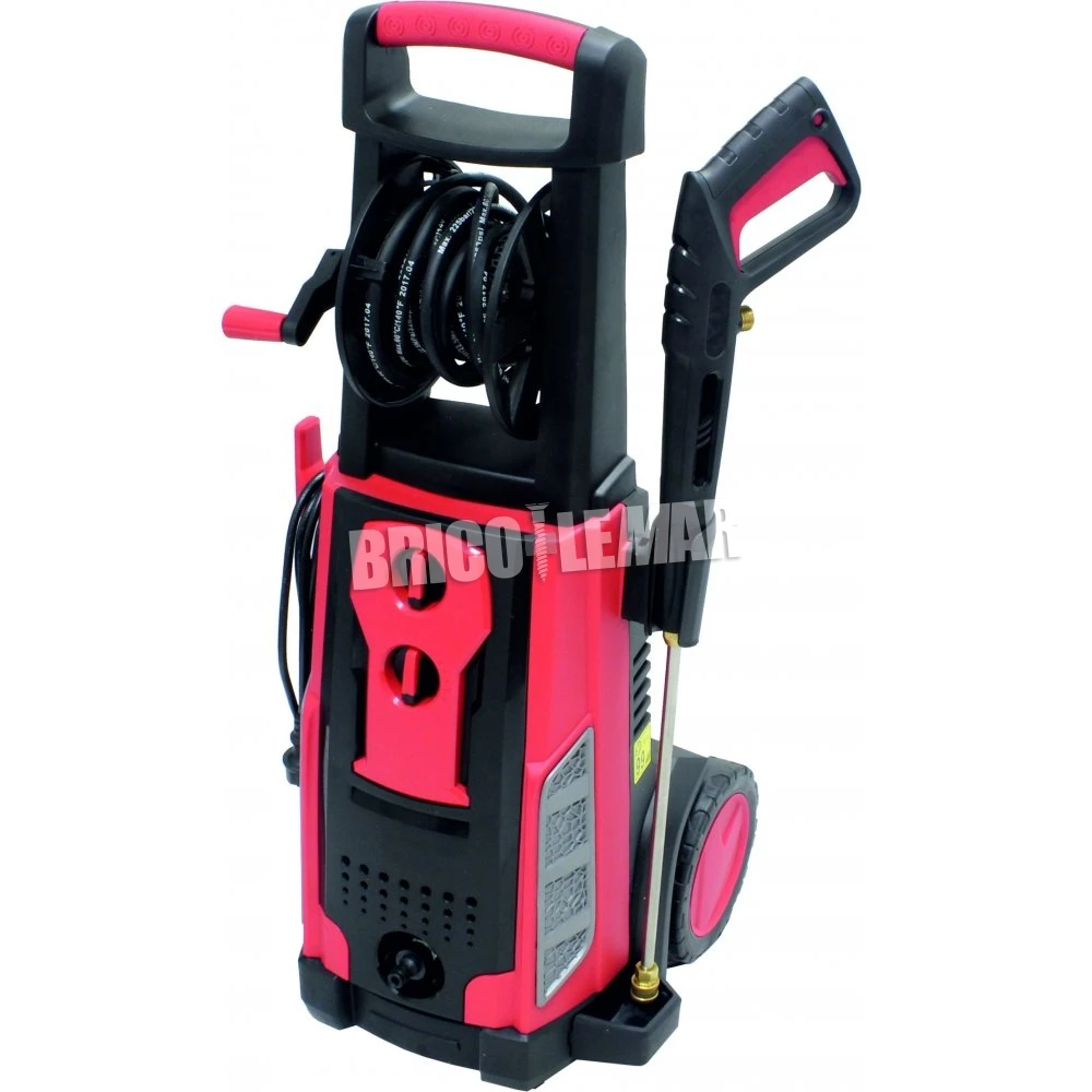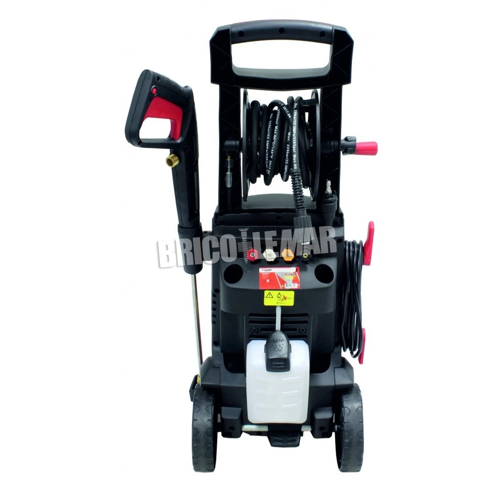 Potente hidrolimpiadora de alta presión de 3.200W de potencia, con una presión nominal de 150Nar y una presión máxima de 225Bar. Con un peso de 26 Kg, trabaja con un flujo máximo de 9L/m, y dispone de una lanza turbo y enrollacables con manivela.