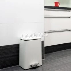 Contenedor De Basura Recycle Rectangular Con Apertura Pedal Aluminio Pintado Blanco 20L Emuca