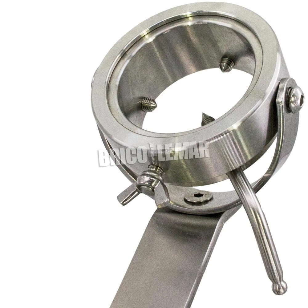 Práctico soporte para jamón profesional con brazo tipo balancín oscilante y cabezal giratorio, con este sistema se puede operar con el jamón desde la postura más cómoda según la zona donde se vaya a realizar el corte. La base del jamonero está fabricada en acero inoxidable.