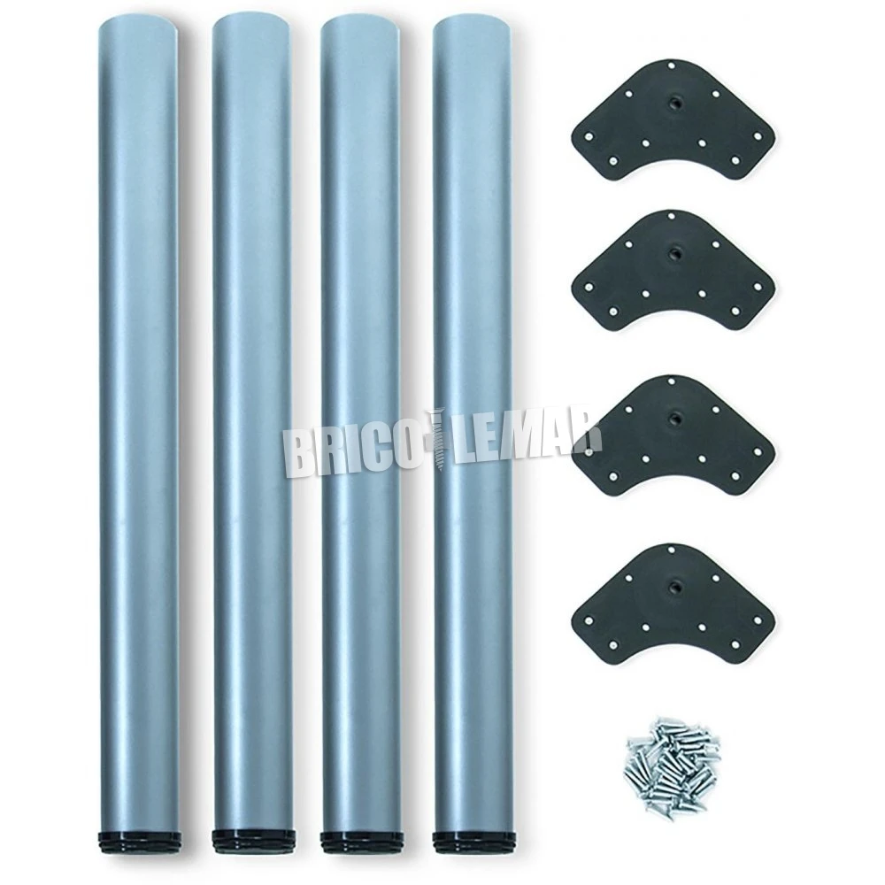 Juego de 4 patas para mesa ø60mm regulable 830-850mm acero gris metalizado Emuca