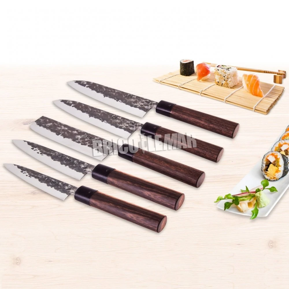 Juego de 5 cuchillos de cocina Osaka y pinza para sushi 3 Claveles