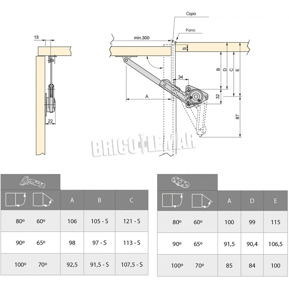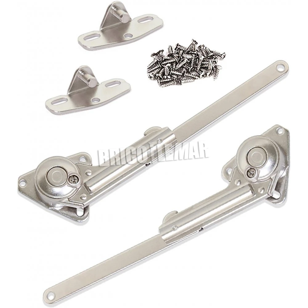 Juego de compases para muebles con puertas elevables. Diseñados para absorber la apertura brusca de las puertas en muebles de cocina, hogar y baño.