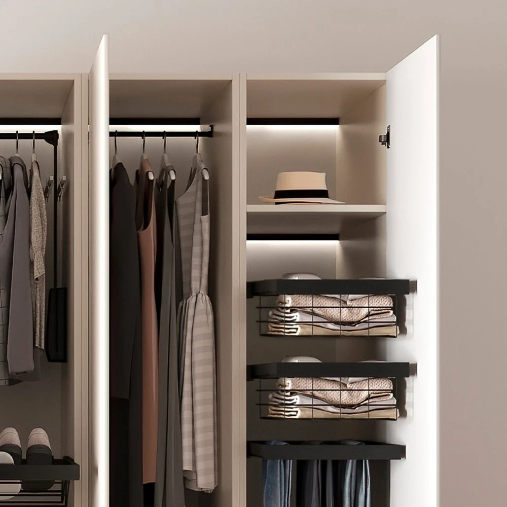 - Juego de distanciadores laterales para instalar junto con el bastidor extraíble Hack en armarios con puertas abisagradas o correderas.