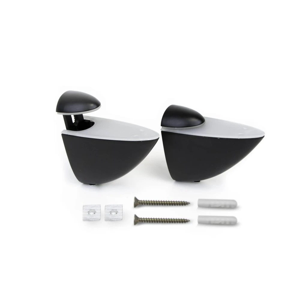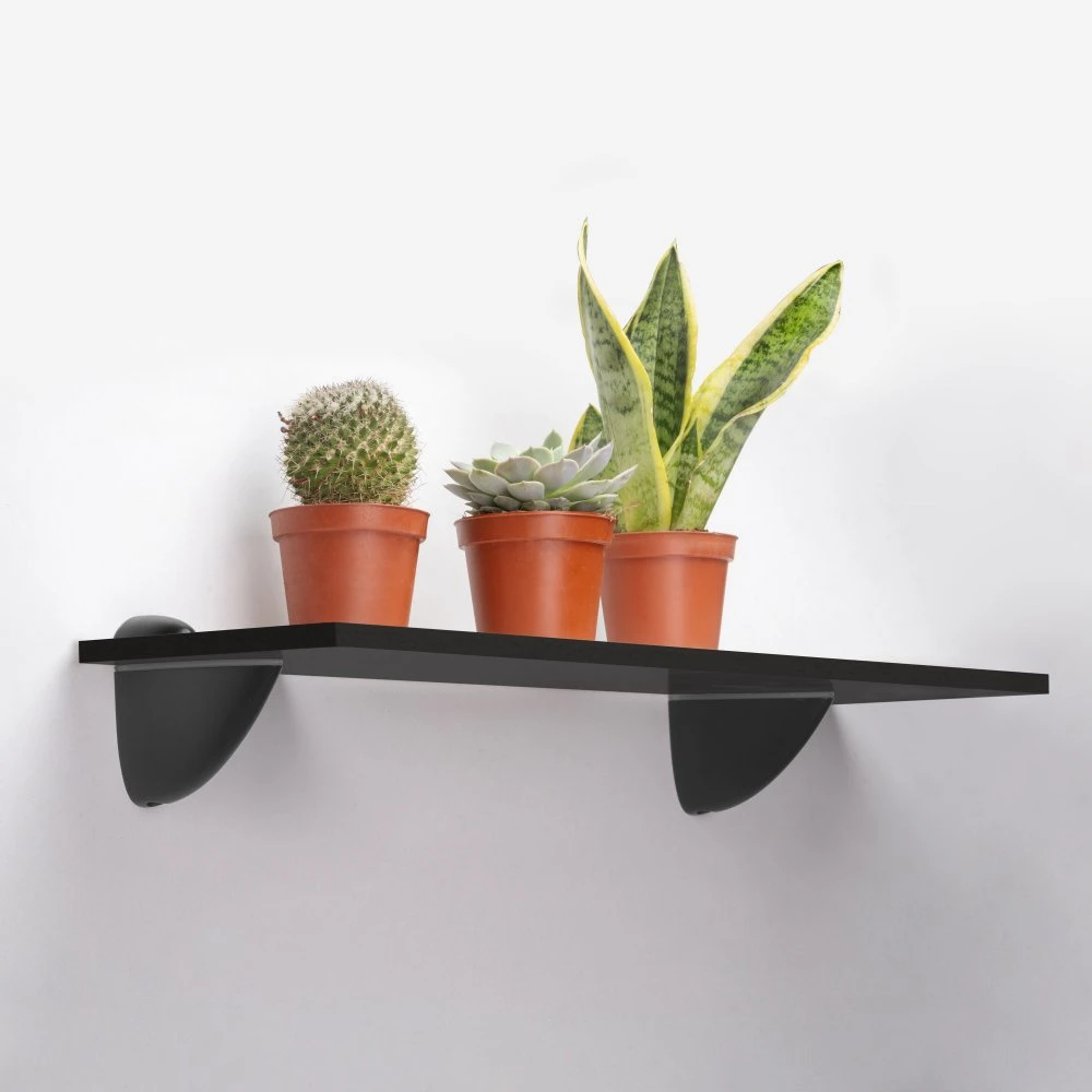 Comprar Juego de soportes para estante de madera o cristal Pelicano, Plástico y Zamak, Pintado negro – Emuca
