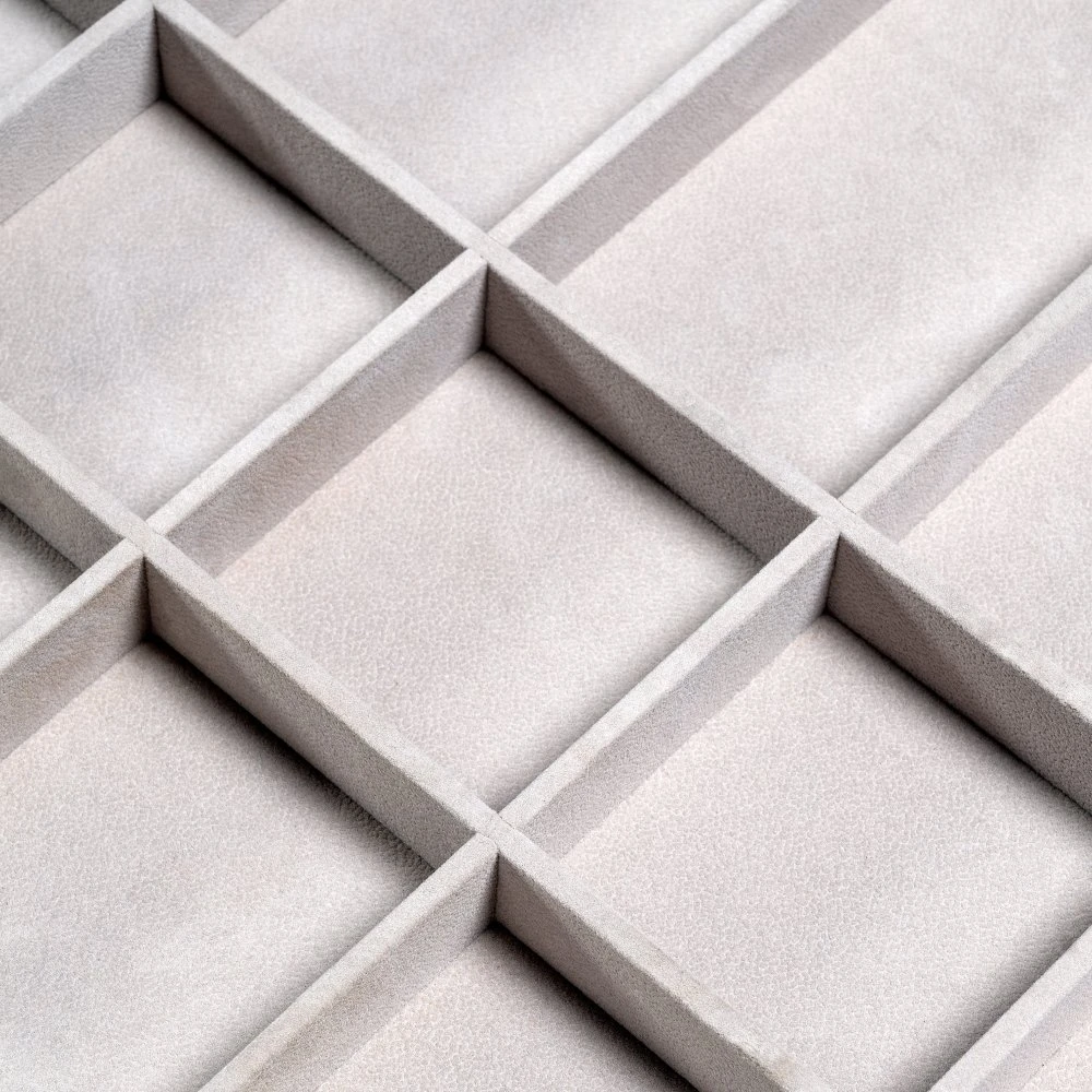- Incluye 1 cajón organizador de ancho 783 mm (M90), con 24 apartados para guardar joyas, calcetines y accesorios. El cajón organizador es de madera con acabado textil en color gris piedra y textura de terciopelo. Es muy fácil de instalar, tan solo hay que poner la bandeja encima del bastidor.