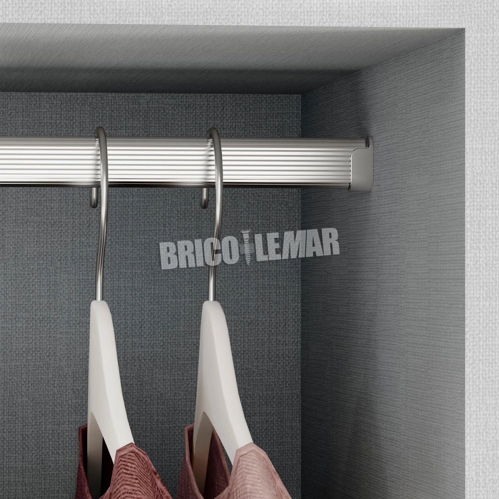 El kit incluye dos barras de armario 30×15 mm fabricadas en aluminio y los soportes laterales para su instalación. Se incluyen además 2 soportes centrales para proporcionar mayor rigidez al conjunto.