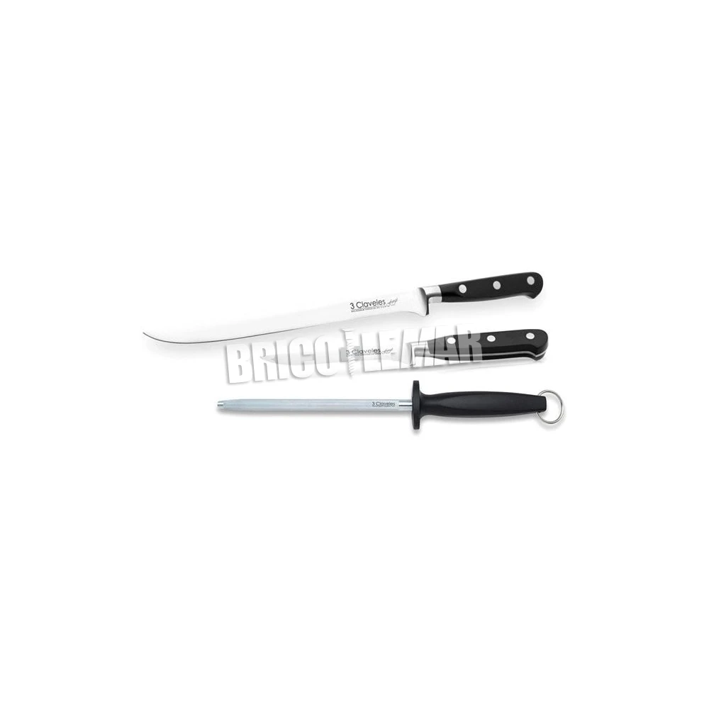 Comprar Kit jamonero giratorio plegable inox + cuchillos Forgé jamonero y deshuesador + chaira 3 Claveles
