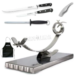 Kit Jamonero Kabra Inox Profesional + Cuchillos Forge + Pinza + Chaira + Delantal Bricolemar