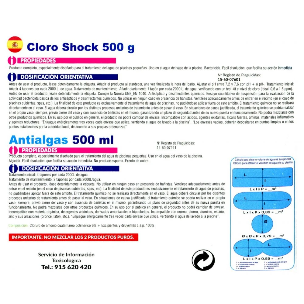 Kit mini piscinas Cloro Shock 500gr + Antialgas 500ml Swimpool