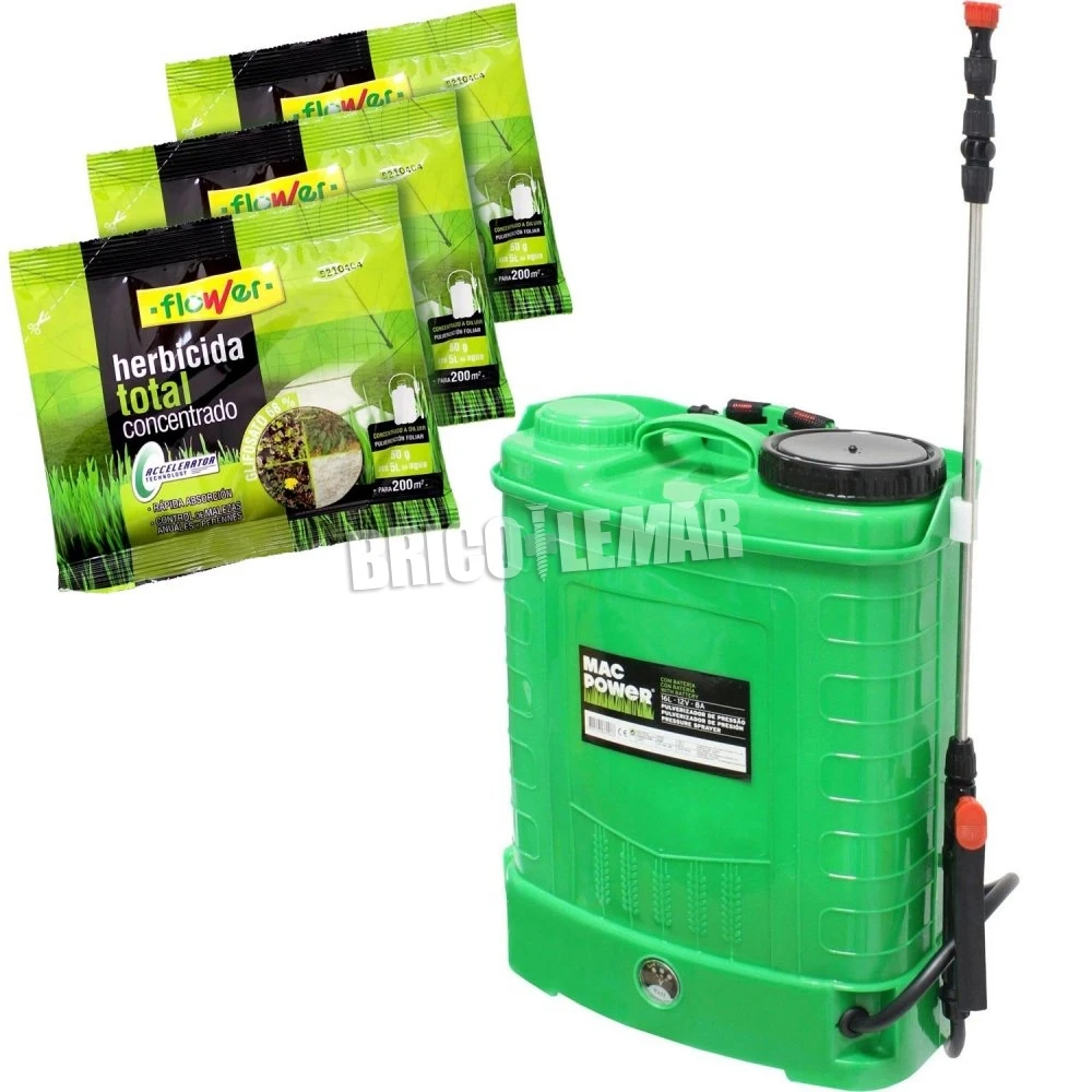Comprar Kit pulverizador de presión 16L a batería 12V MacPower + Herbicida Total concentrado 3x50g Flower