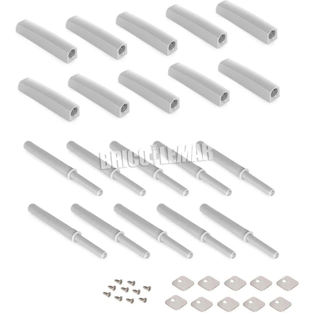 Lote de 10 cierres de puerta Push Lite para atornillar con regulación 80mm magnético plástico gris Emuca