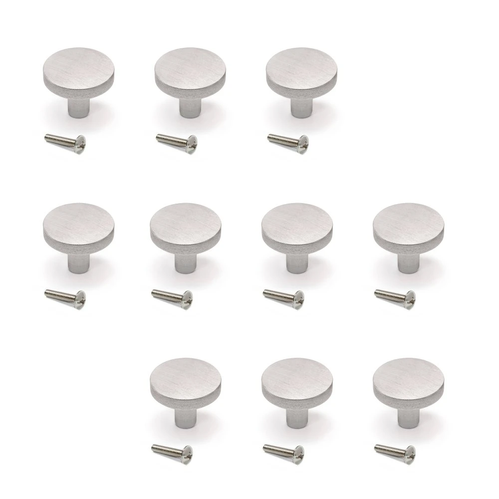 Comprar Lote de 10 pomos para mueble Uppsala, diámetro 30mm, Aluminio, Anodizado inox – Emuca