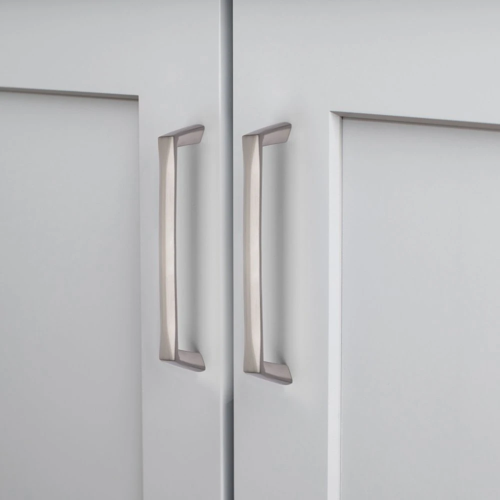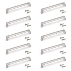 Comprar Lote de 10 tiradores para mueble Cantón, L142mm, intereje 128mm, Zamak, Níquel satinado – Emuca