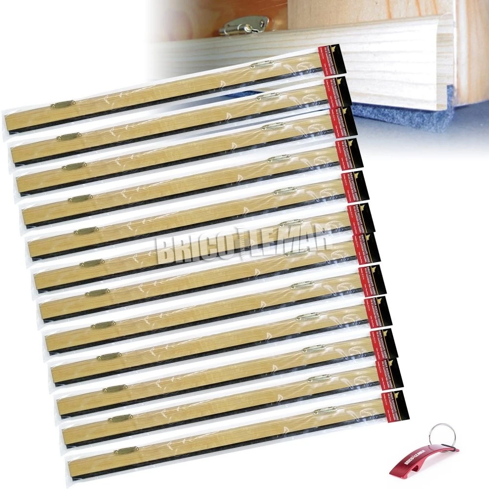12 burletes basculantes para bajo puerta de madera en color pino, de 81,5cm de largo cada uno. Incluye sistema de sujeción.