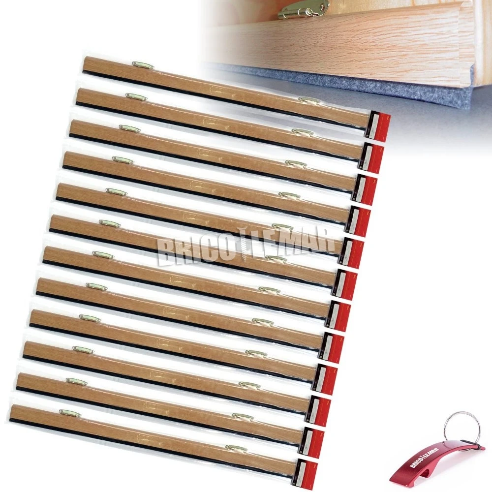 12 burletes basculantes para bajo puerta de madera en color roble, de 81,5cm de largo cada uno. Incluye sistema de sujeción.