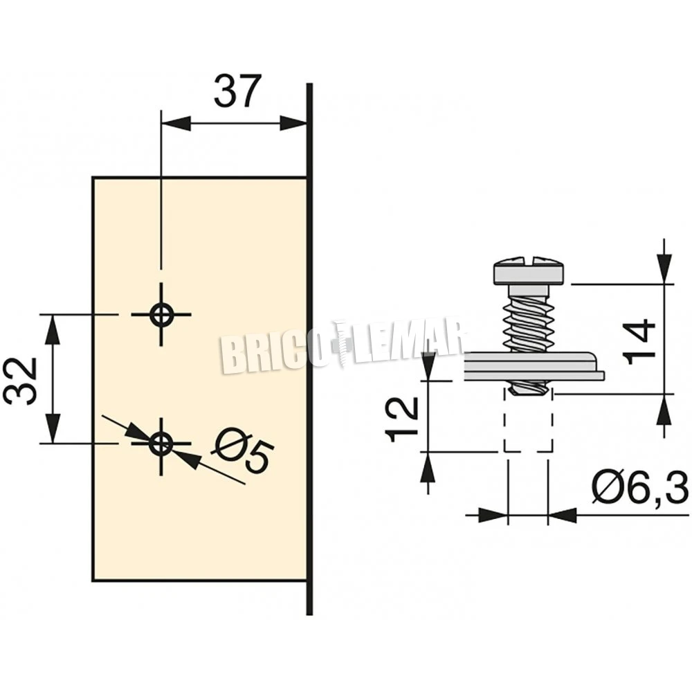- Fijación con tornillo Euro D. 5 x 12 mm.