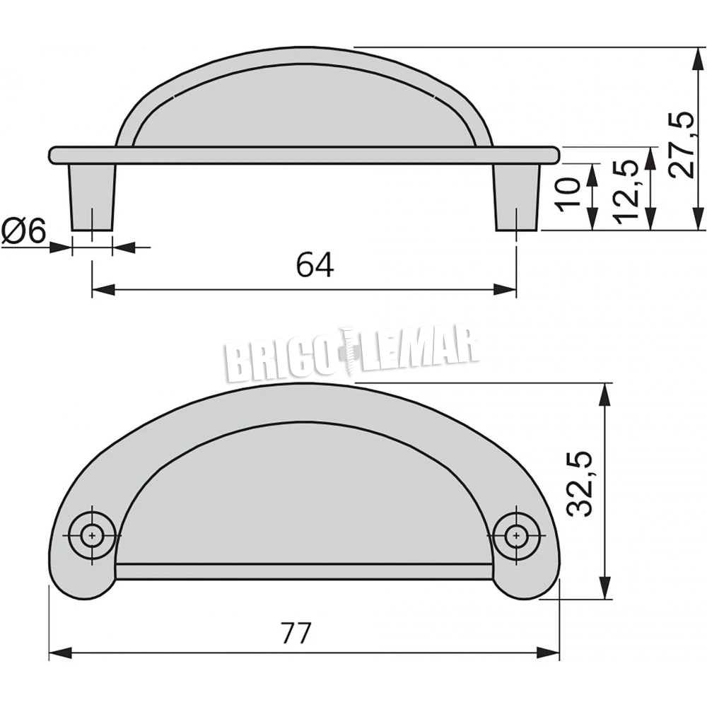 Lote de 20 tiradores, embalados individualmente para evitar arañazos y golpes, fabricados en zamak con acabado bronce. Válidos para interejes (distancia entre agujeros de montaje) 64mm. Tornillos M4 para la instalación incluido.