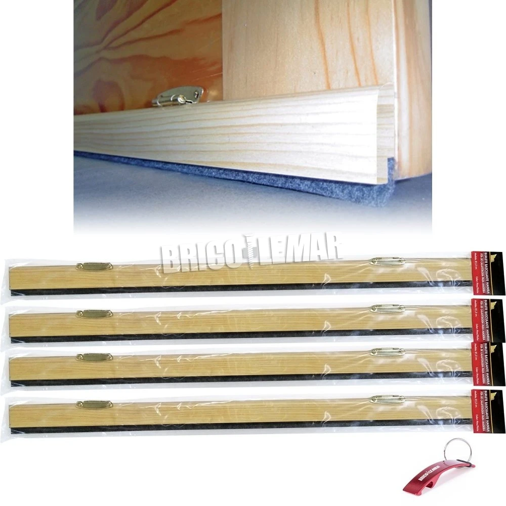 4 burletes basculantes para bajo puerta de madera en color pino, de 81,5cm de largo cada uno. Incluye sistema de sujeción.