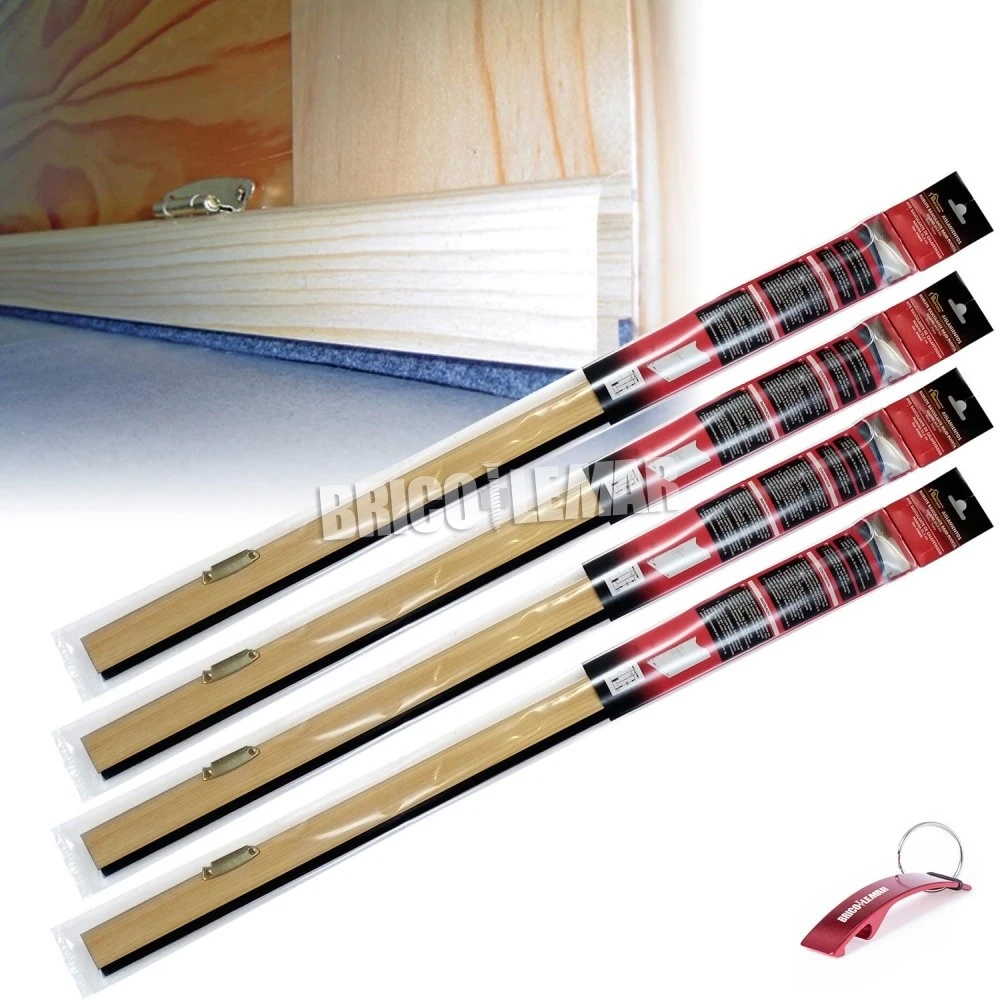 4 burletes basculantes para bajo puerta de madera en color pino, de 91,5cm de largo cada uno. Incluye sistema de sujeción.