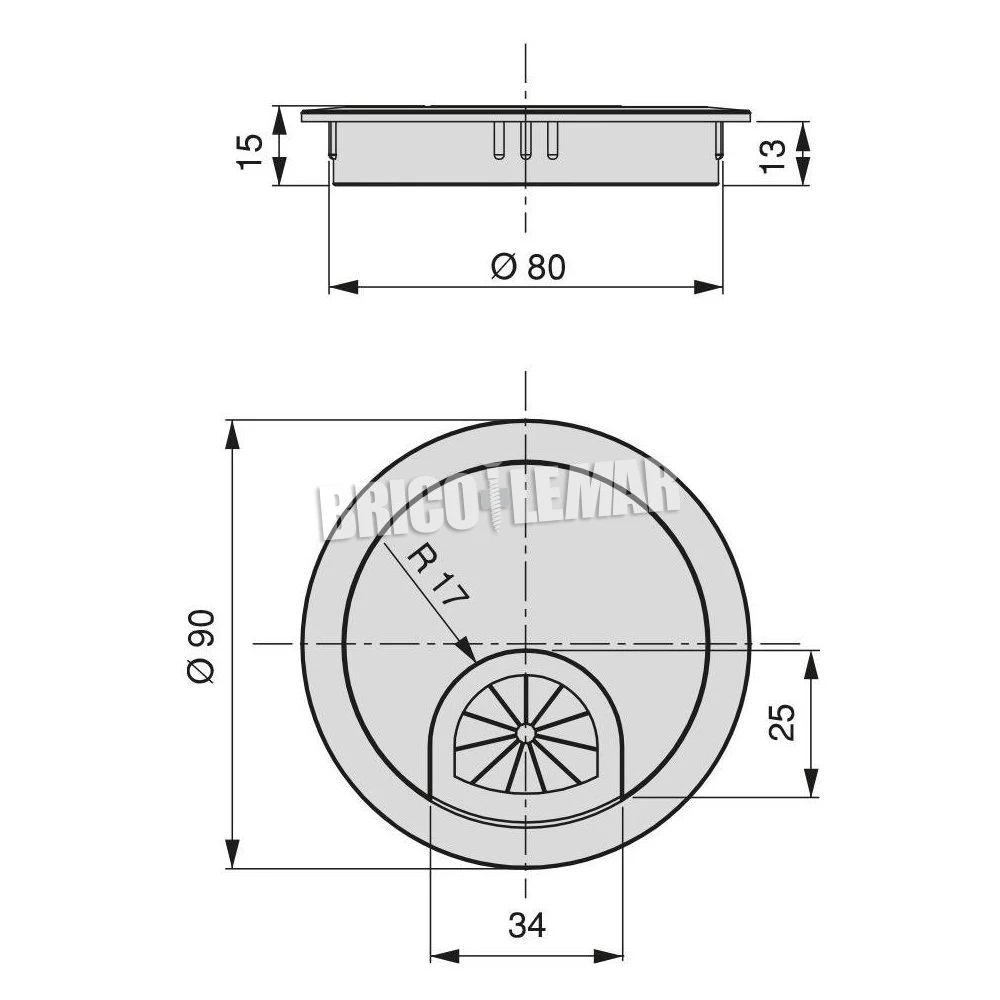 Lote de 7 tapas pasacables circulares Ø80mm para encastrar zamak cromado Emuca