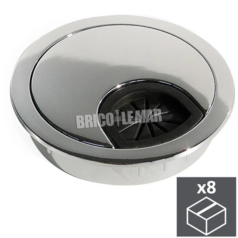 Lote de 8 tapas pasacables circular Ø60mm para encastrar zamak cromado Emuca