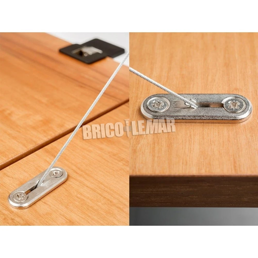 Mecanismo para puertas abatibles mediante cable de acero. El mecanismo aporta una solución estética y funcional muy innovadora. Ideal para mobiliario de hogar y salón.