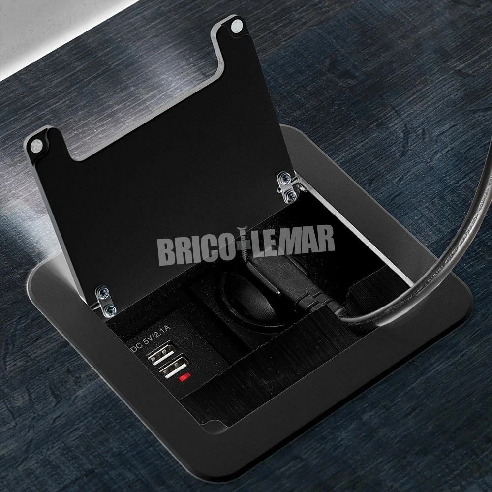 Multiconector de mesa 2 USB +1 HDMI + 1 enchufe EU 145x130mm acero y aluminio negro Emuca