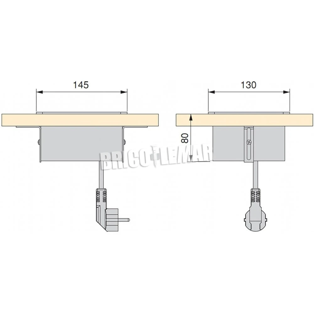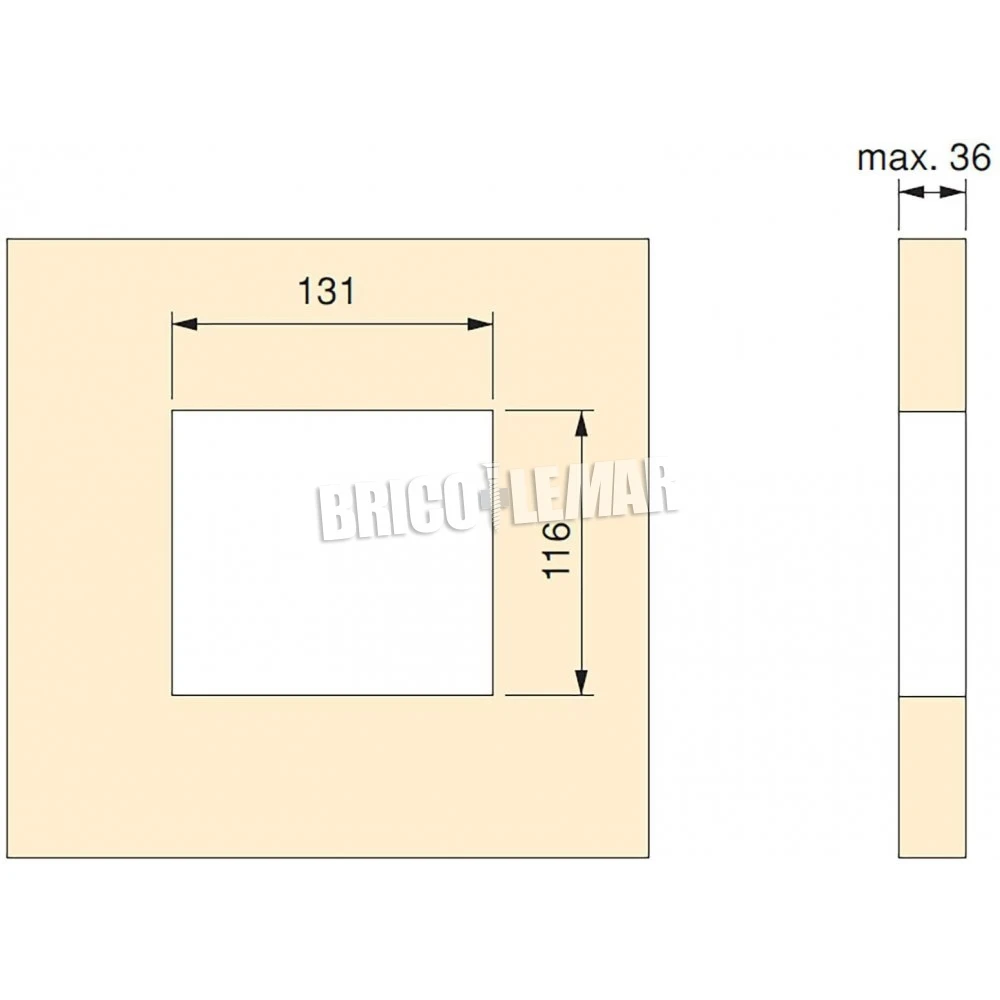 - Montaje empotrado: requiere de un mecanizado en el mueble de 131x116mm.