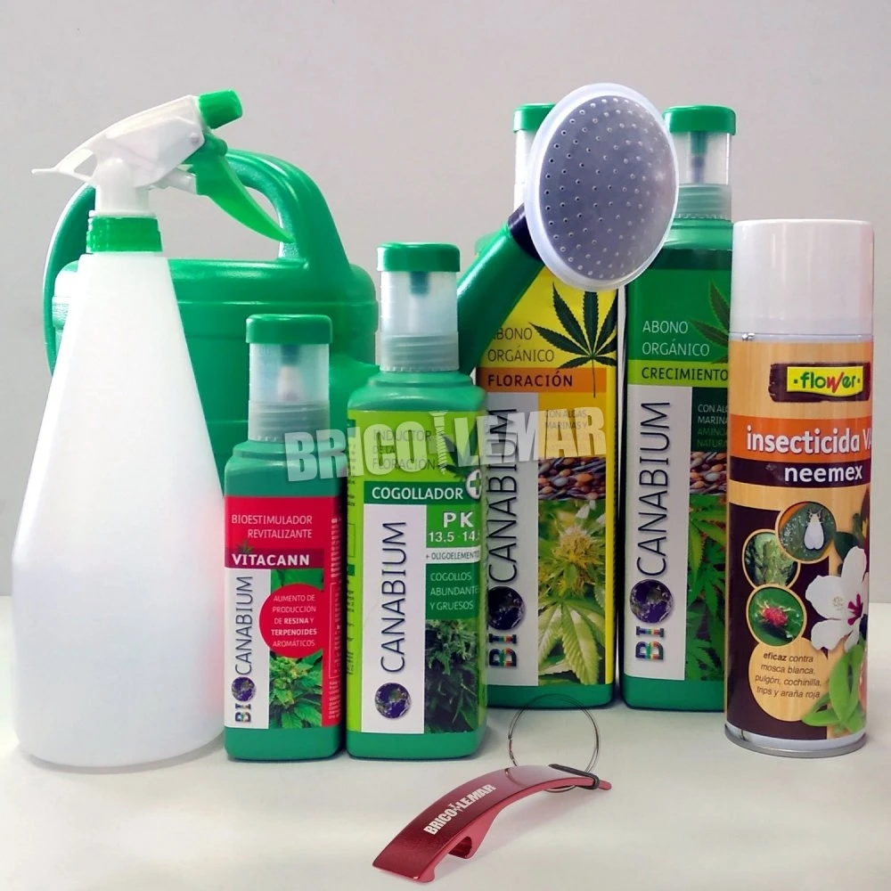 Comprar Pack 4 productos Canabium para cultivo de cannabis + insecticida natural spray 500ml + pulverizador 1L + regadera 5L