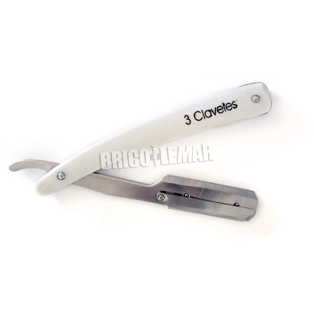 El pack incluye, por un lado, 2 tijeras peluquero de 5.5” con filo suave de la serie Skool de 3 Claveles, compuesta por la tijera de peluquería de corte y la tijera de peluquería de esculpir de 24 dientes, fabricadas en acero inoxidable, y por otro lado la navaja de peluquero blanca de 20cm para hojas intercambiables de un solo uso, con cierre de seguridad y en acero inoxidable.