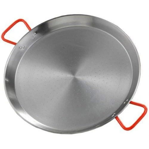 Paella valenciana pulida de 40 cm de diámetro, para 9 raciones, con remaches de acero, apta para gas y leña.