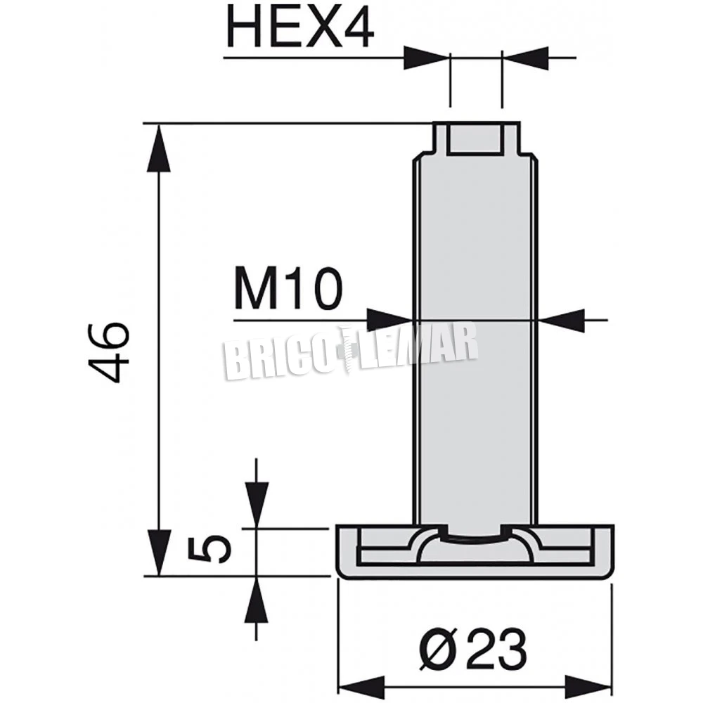 - Dispone de tornillo M10 y tapa circular Ø 23 mm de plástico en color negro.